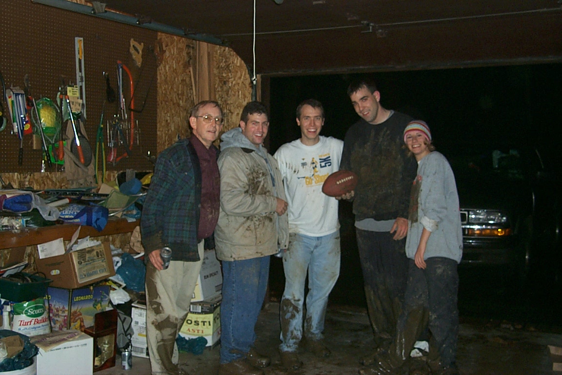 This year, not everyone wanted to get involved because it rained the entire day and the field was a muddy mess. As such, we ended up with only five willing participants: Alicia, Cousins Tim and Mike, myself and Alicia’s father. We ended up playing some two on two while Alicia’s father just roamed and played offense. We had fun and got rather… dirty.