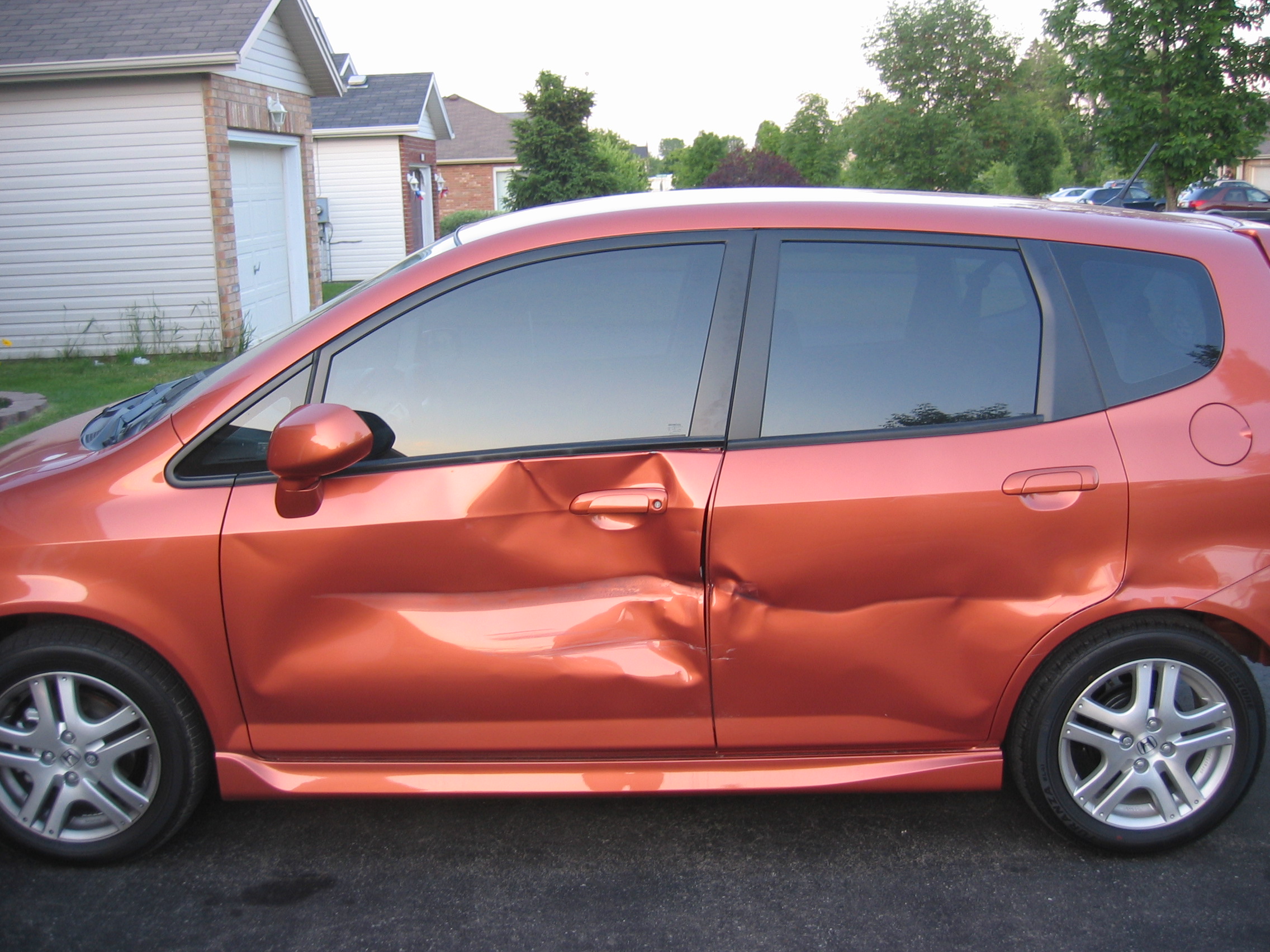 On Wednesday evening, Alicia and I were in her beautiful new car driving to Walmart to pick up an item or two. Just after we turned onto Woodlawn Road in Welland (approximately 1-2 km from our house), a teenager backed out of a driveway and across a lane of traffic without looking. The back corner of his 1994 Ford Ranger slammed into Alicia’s door and then proceeded to scrape right down the side of the vehicle. Fortunately the airbags didn’t deploy and we were unharmed.