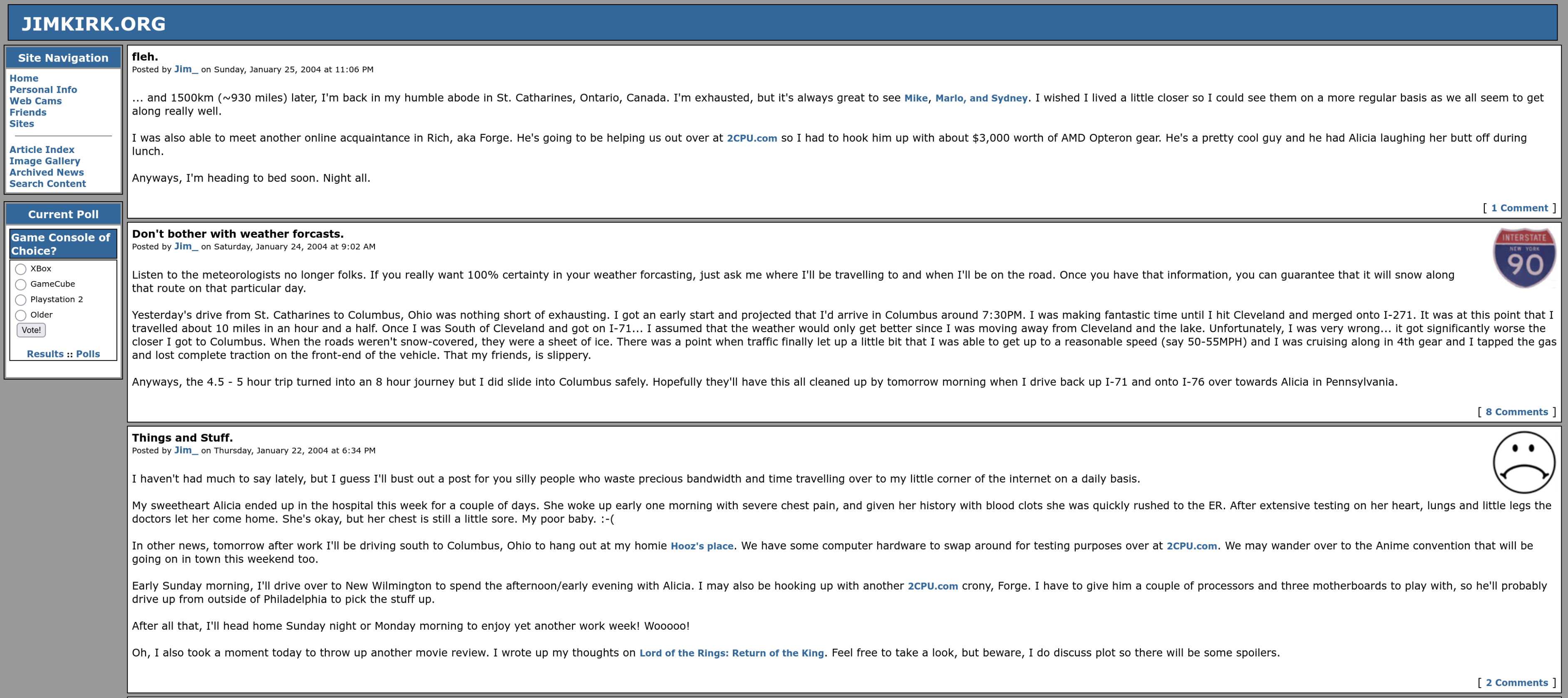 January, 2003 - Looks pretty much the same, but I added a content management system and a polling system…